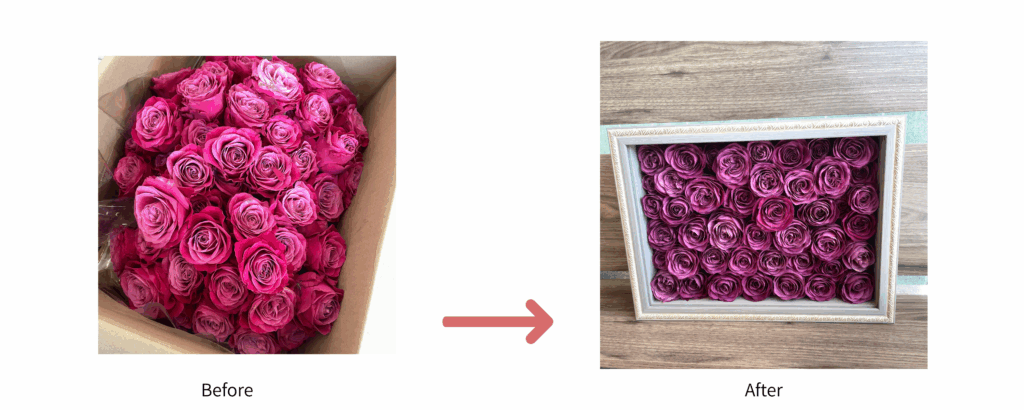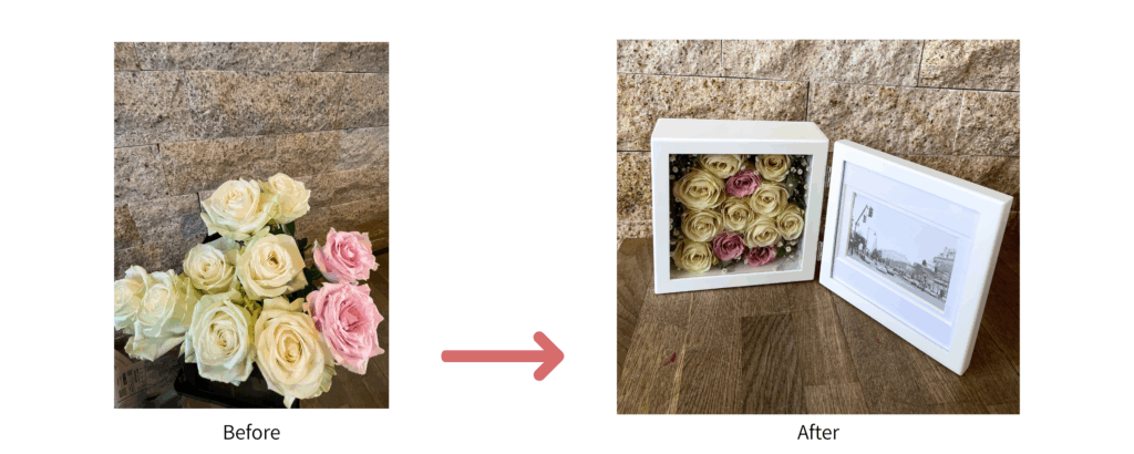 ただ乾かすのではなく、あの日感じた空気感や、贈った方の想いを閉じ込めること。